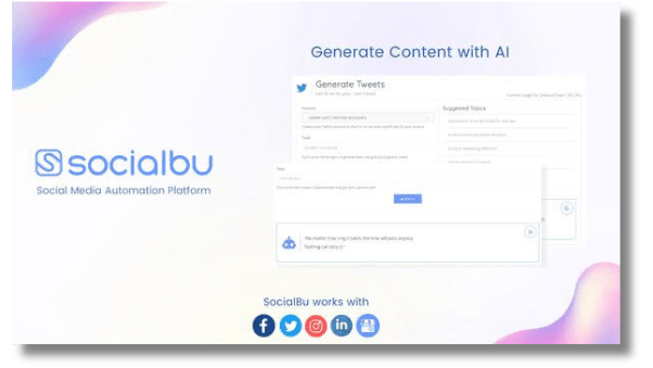 SocialBu offers an AI-powered social media content generator that makes it easy for you to share original, engaging posts on your social media accounts. It lets you generate not just the topics but engaging content as well that you can use for your social media posts.