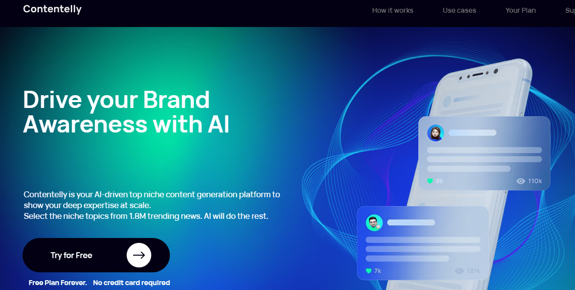 Contentelly is a powerful AI-driven platform that helps you create great content for social media platforms, including Twitter, LinkedIn, Instagram, and Facebook.