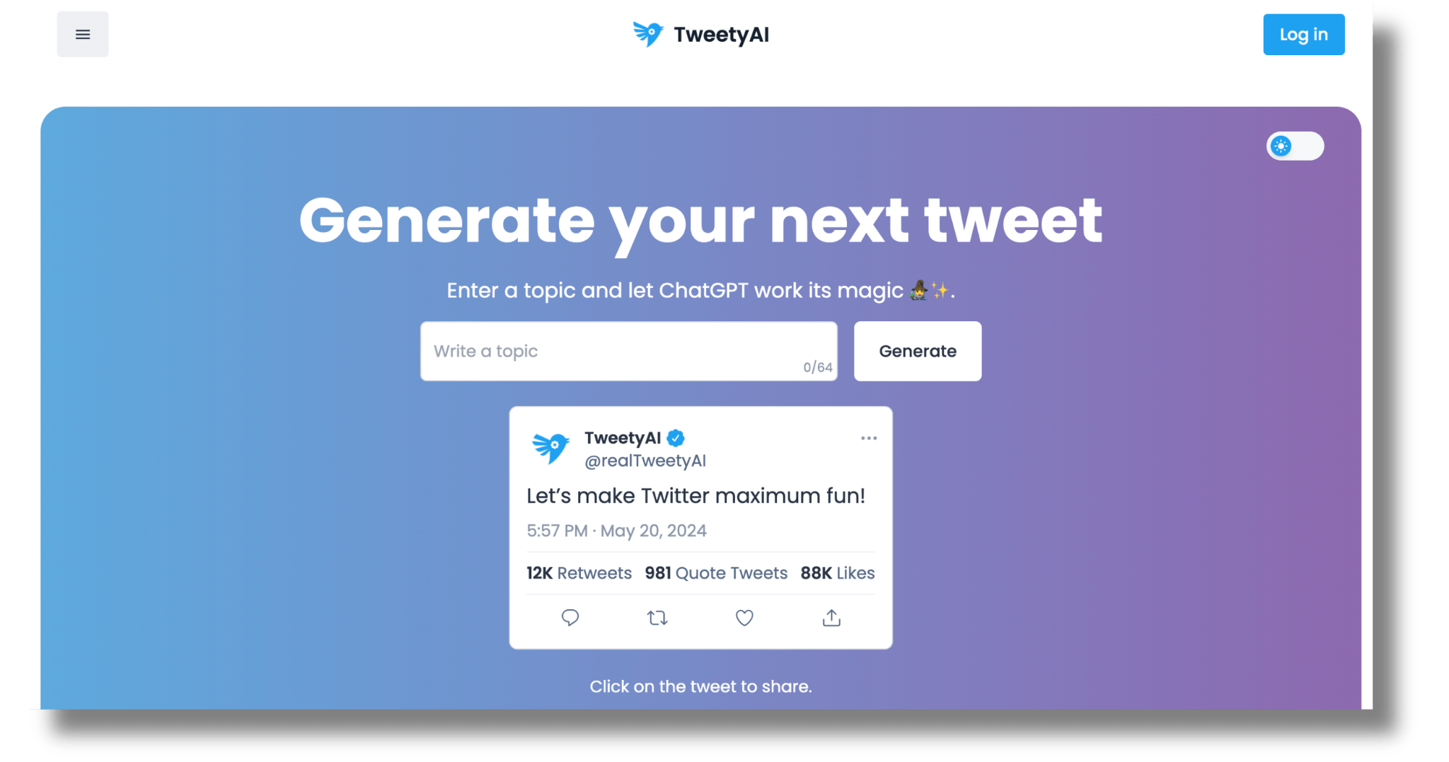 - Easy sharing and downloading: Users can freely download or share the generated tweets on social media.