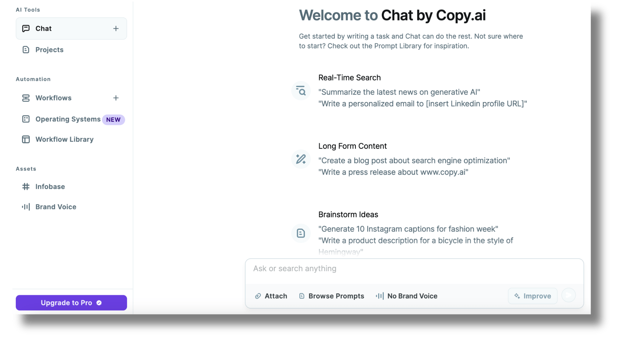 - My Projects: Provides an overview of all projects within Copy.ai.