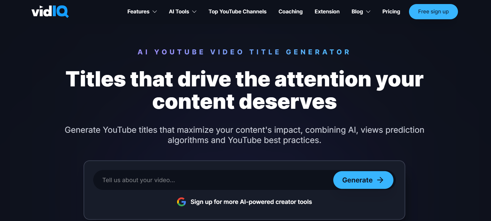 VidIQ offers an AI-powered title suggestion feature alongside its suite of YouTube optimization tools. It analyzes your video and targets keywords to generate creative and SEO-optimized title ideas that maximize your video’s impact. VidIQ is also helpful for competitor analysis and overall YouTube channel growth strategies.