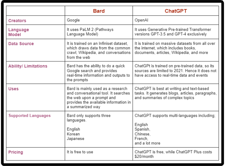 Comparison of Key Features of Bard and ChatGPT