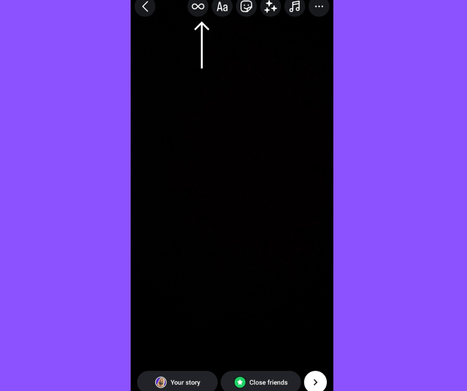 To trim the beginning of your Boomerang, tap the infinity icon at the top of the screen.