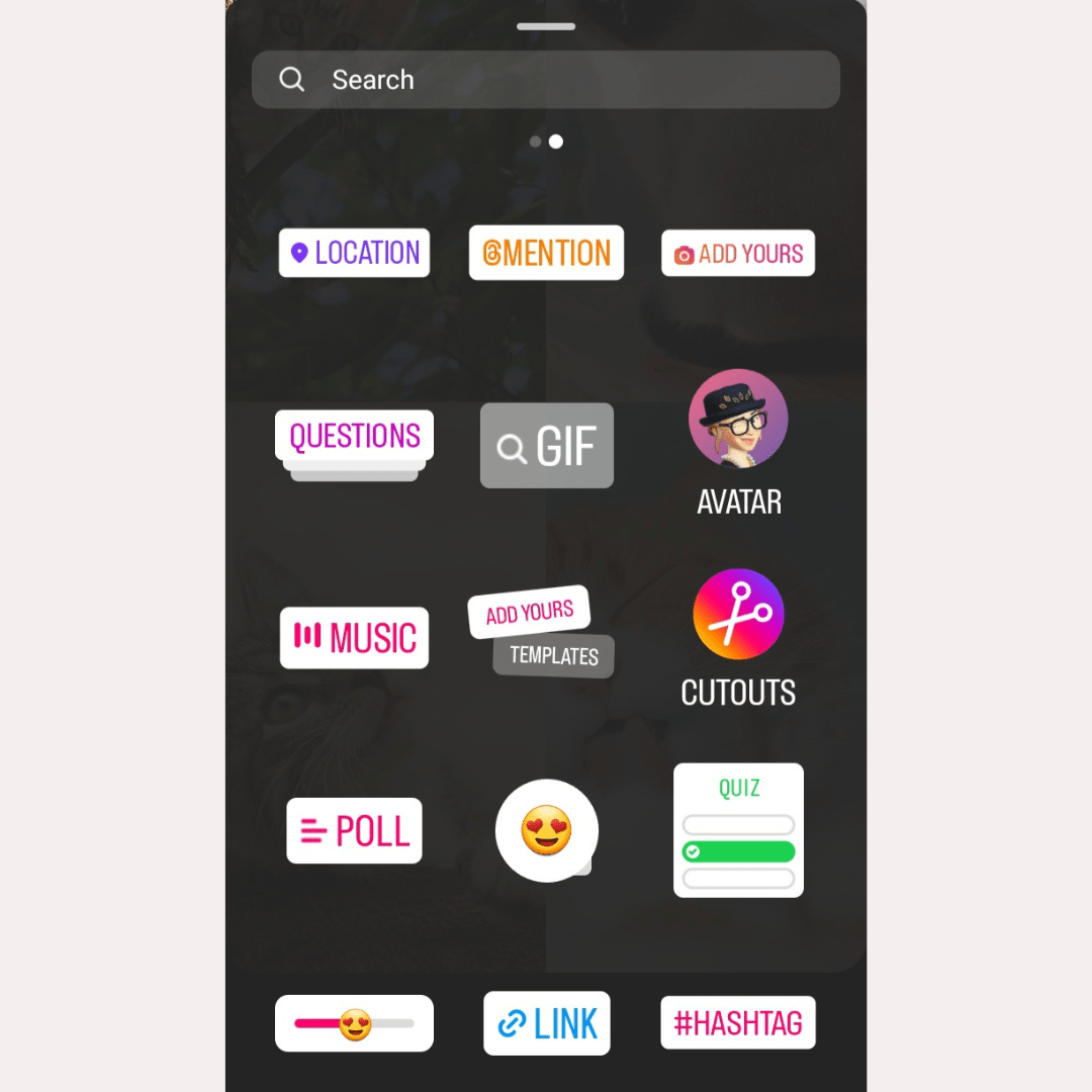 2. Use Stickers: Open a new story and choose a background photo or color. Tap the sticker icon (square simley and select “Photo.” Choose your photos and resize and position them as you like. You can add text and other stickers for extra fun!