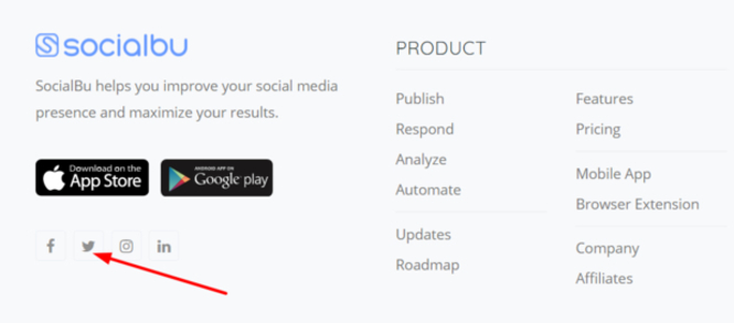 - Add social profile links in the footer of your website. Just like SocialBu is doing