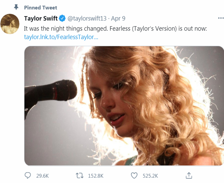Taylor Swift is using the pinned tweet for promoting his new song;