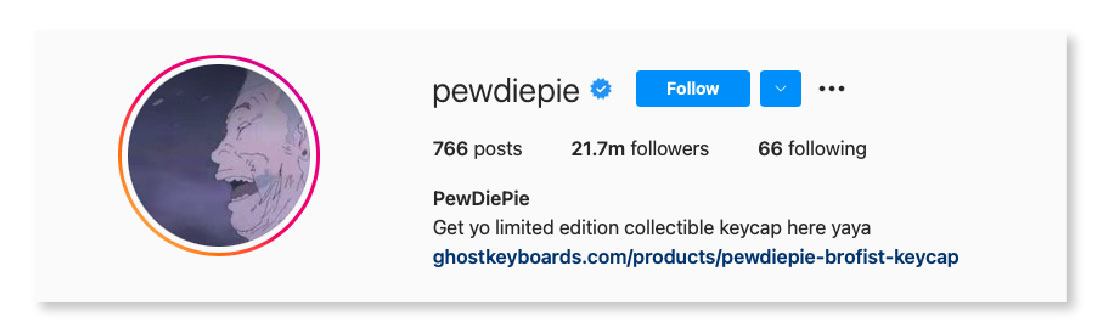 This one needs no description. It’s crystal clear. We all know profile pictures always catch our eye first. You have to have a good-looking or attractive profile picture that connects with the target audience. Just like @pewdiwpie;