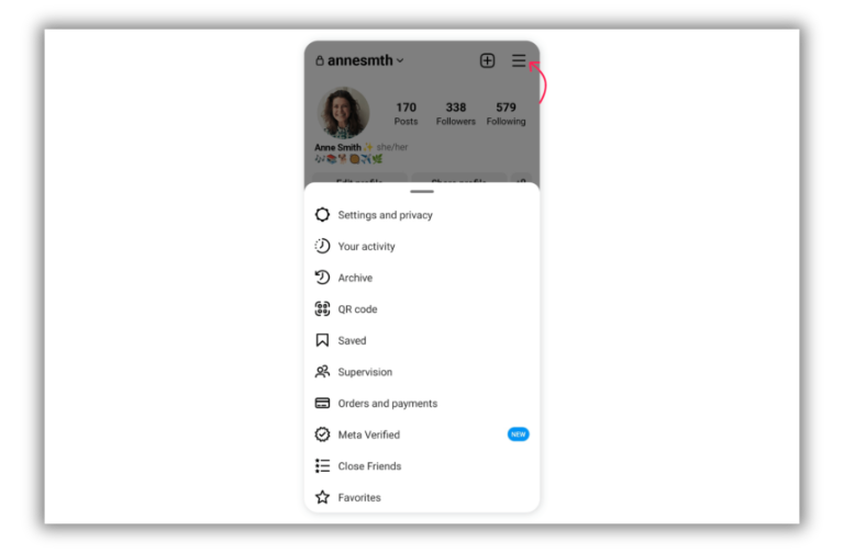 - Through your profile: Go to your profile and tap on the three horizontal lines in the top right corner.