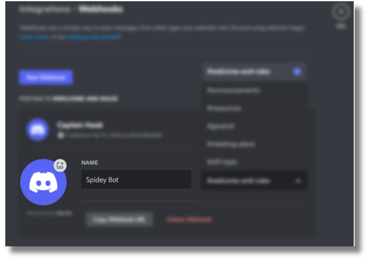 - Customize Settings: You can further customize your webhook by uploading an avatar image. This image will represent the webhook in the channel. You can also adjust other settings, such as the webhook’s visibility, or delete it.