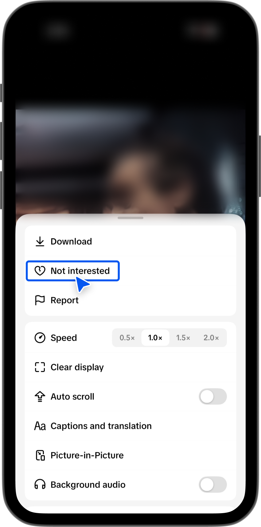 - Long-press a video → Not Interested
