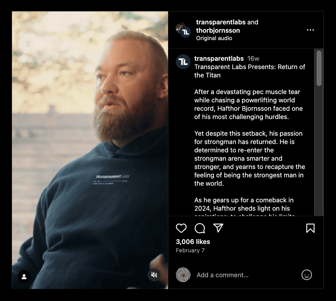 Similarly, Transparent Labs breaks the mold of the traditional supplement industry tropes by eschewing the typical hyper-masculine imagery and instead focusing on authentic stories of personal transformation, vulnerability, and bouncing back after hitting the rock bottom.
