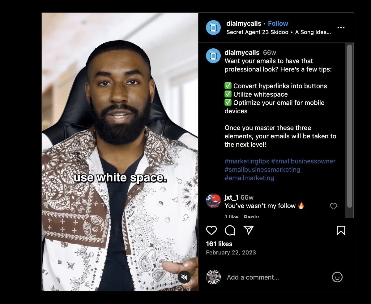 DialMyCalls takes this approach to their Instagram strategy. The brand mainly posts videos and animations with tips and tricks relevant to their audience’s interests and needs. This way, even an occasional promotional post won’t be perceived as pushy or salesy.