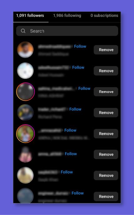 - Your ‘Followers’ list displays accounts that engage with you extensively through likes, comments, or direct messages.