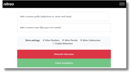 You can also enter the starting letter and the type of characters you want to include as well as your name, hobbies, and interests for a personalized username.