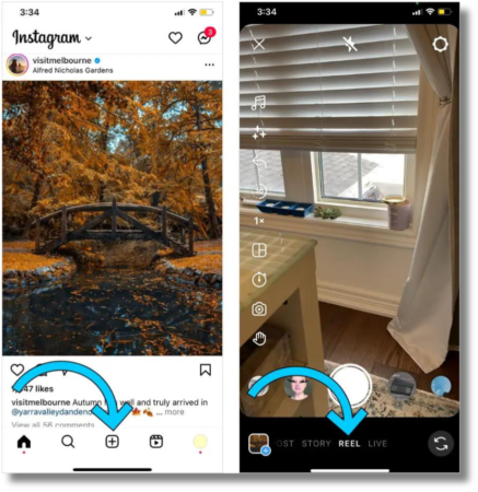 The Reels feature is primarily designed for mobile devices, emphasizing on-the-go creation and sharing. This is how you can create and share a reel on your device: