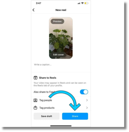 Step 6: Share your Reel to your feed, and optionally share it to your Instagram Story.