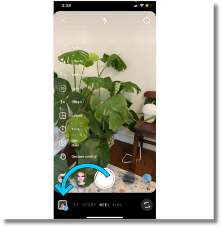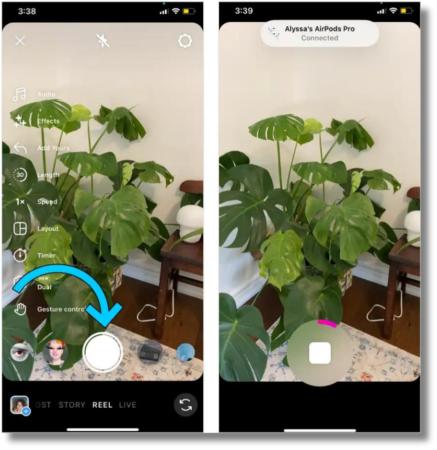 Step 2: Start recording a video or “Reel” by tapping and holding the record button.