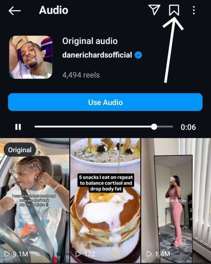 You can also identify the trending audio with the upward arrow symbol, which shows its success. Save it and use it for your Reels. Simple!