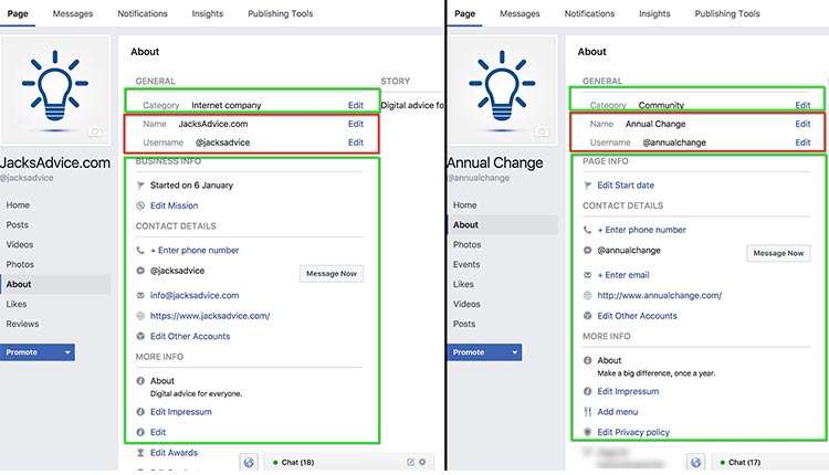 Once the profile and header pictures are in place, you need to change the “About Us” section so that the information is exactly the same on both pages. For this, you can copy and paste the information from one page to the next. Also, make sure that you include all information and fill in all populated fields.