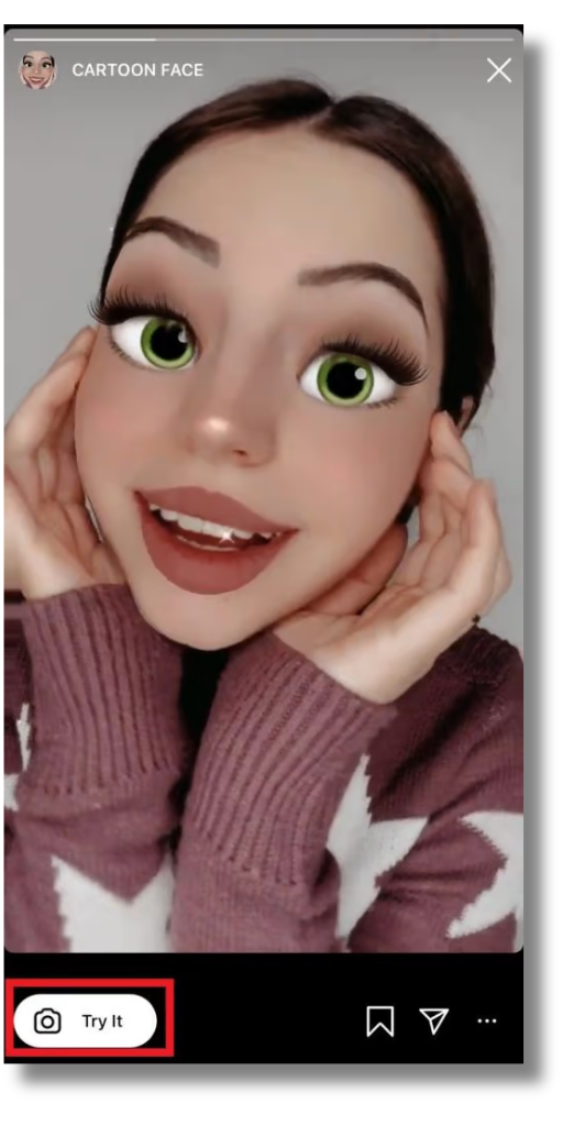 Instagram’s popular cartoon face filter is a fun and creative way to transform your photos and videos into cartoon-like versions of yourself. The filter uses augmented reality (AR) to add exaggerated features to your face, such as large eyes, a small nose, and a wide mouth. By using it, you are going to feel like a character right out of a Disney movie.