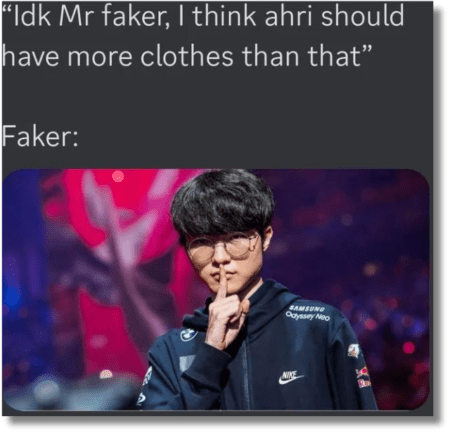 - “Faker” Memes: The legendary “League of Legends” player Lee “Faker” Sang-hyeok continued to be a meme favorite in 2024, with fans creating memes that celebrated his skill, sportsmanship, and iconic moments.
