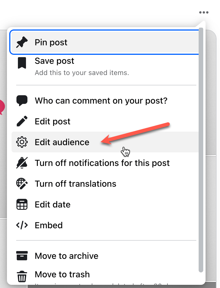 You should see an option to edit the audience or edit privacy settings there. If you’re making a post, you should know the audience you will share it with. There, you can click on the audience and adjust as needed.