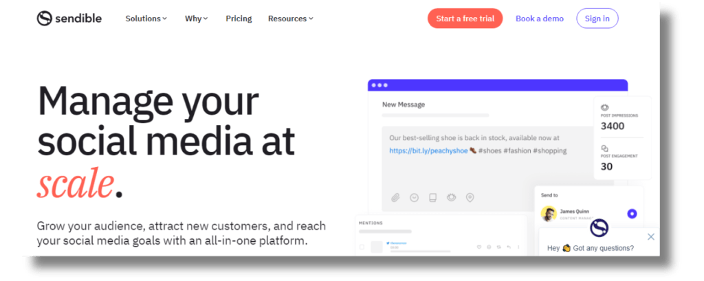 You can centralize and manage social media accounts, so you don’t need to keep switching between accounts. Sendible integrates with YouTube search, royalty-free image search, and Canva.