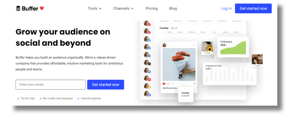 Buffer has a range of tools that support content creation, post-scheduling, and analytics. It is an intuitive platform that will help you to work more efficiently and collaborate with your team. Scheduling your posts is very simple for all your social media accounts.