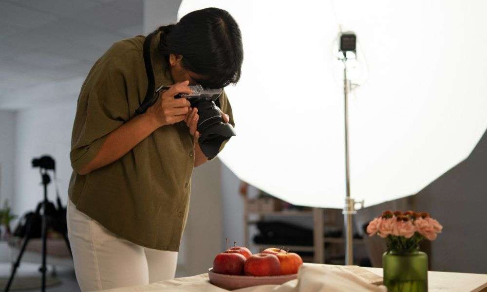 To make product photos more engaging for social media platforms, choose the best cameras for social media photography, select high-quality and proper lighting, clean backgrounds, shoot multiple angles, and close-up shots to highlight features, maintain consistent branding, try to portray a story, and edit photos for social media to fit perfectly.