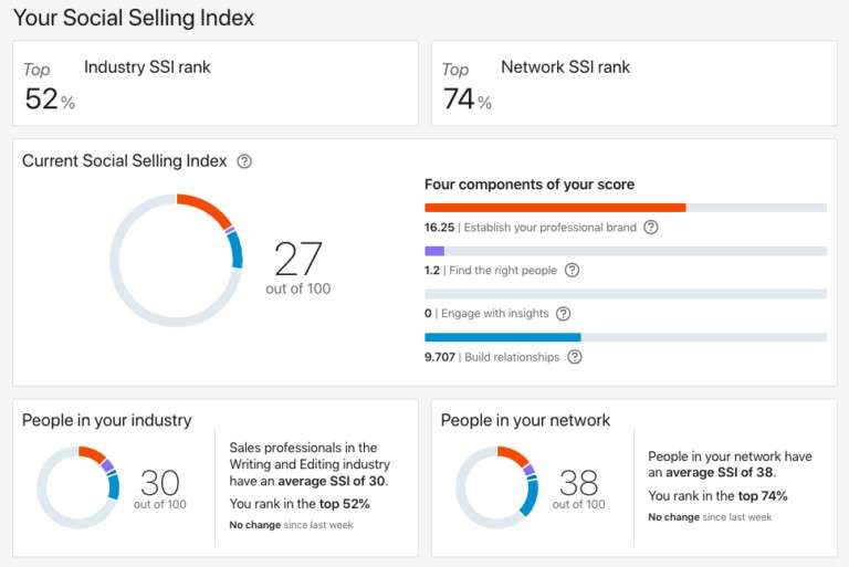 The higher SSI score indicates that you effectively use LinkedIn’s social selling techniques.