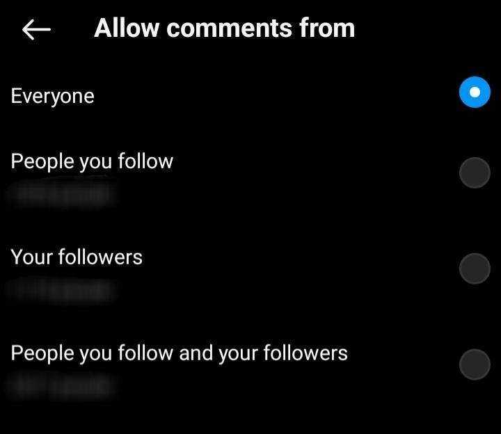 • You can also go to ‘Allow comments from” and choose from whom you want to receive comments.