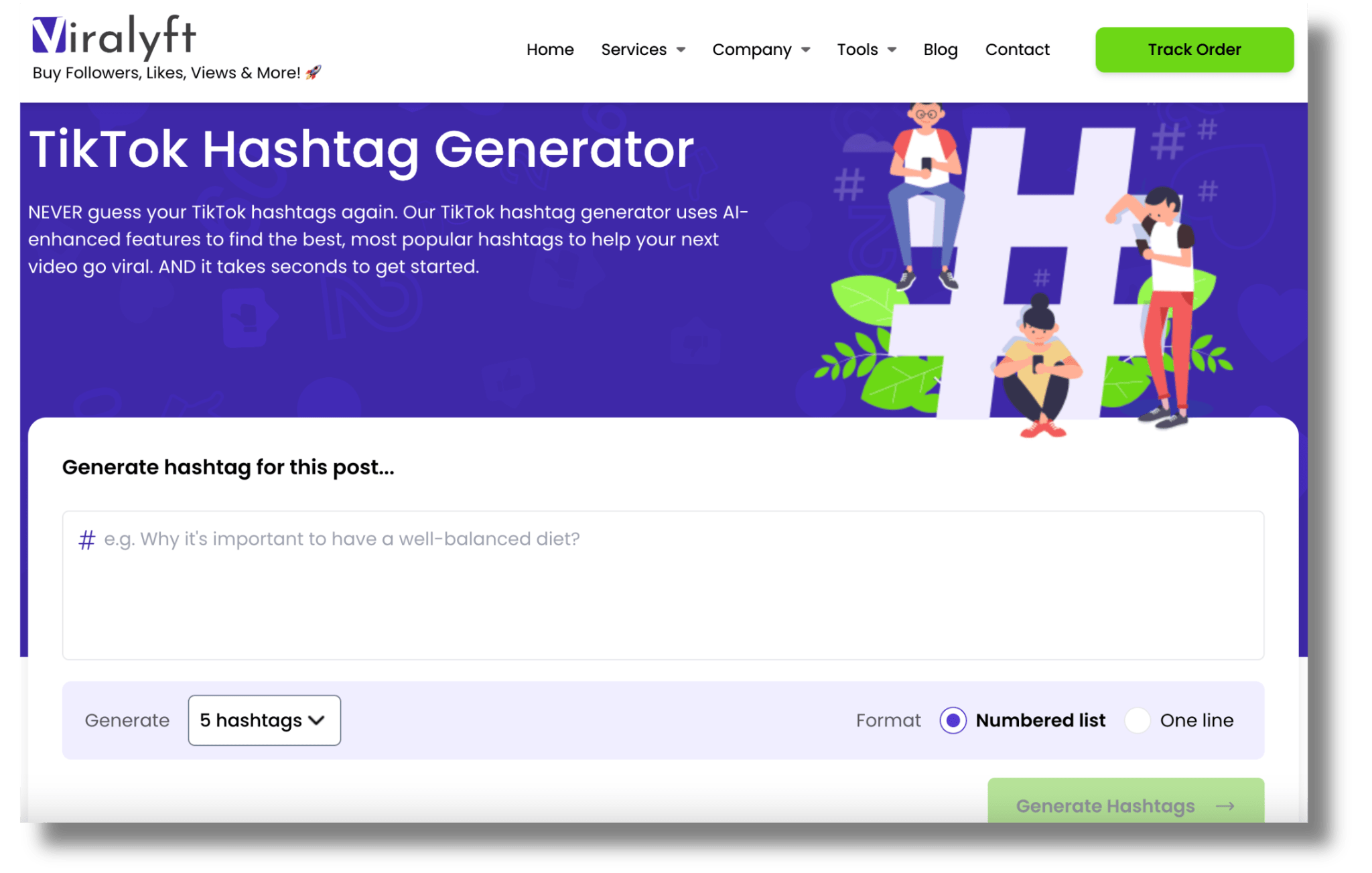- Provides a set of hashtags that users can easily copy and paste into their TikTok posts.