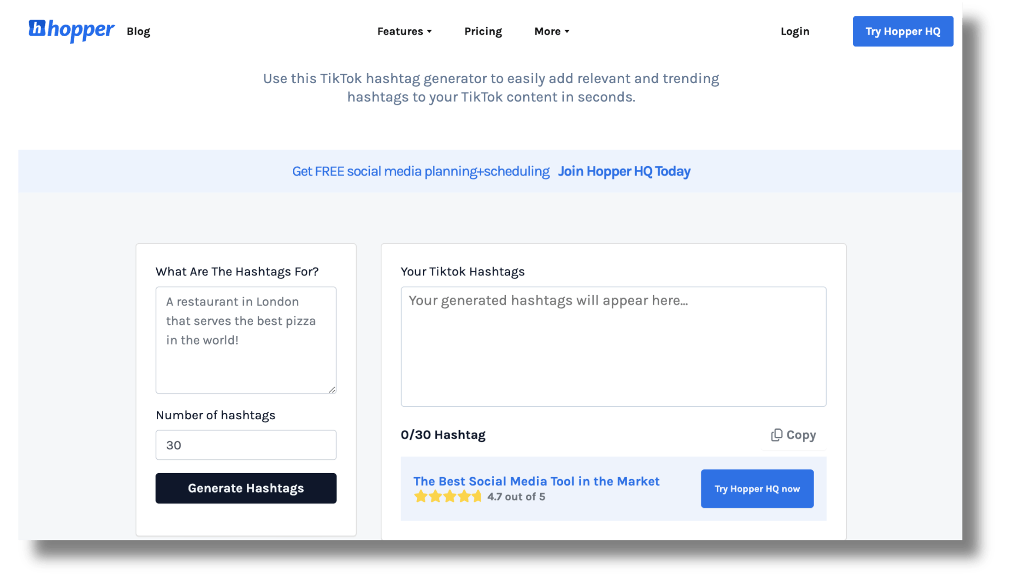 Hopper HQ’s TikTok Hashtag Generator is a cutting-edge tool designed to simplify the process of discovering and selecting impactful hashtags for TikTok content. This user-friendly solution streamlines hashtag selection, saving time and effort for content creators, marketers, and businesses aiming to enhance their TikTok presence.