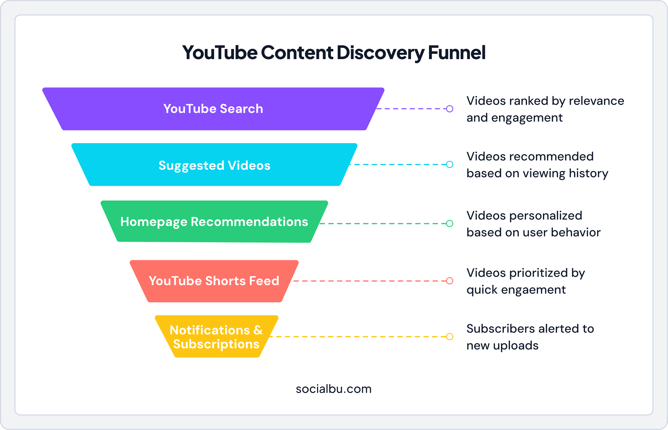 YouTube uses multiple discovery systems to surface content to viewers, and understanding how each one works is a core principle of any effective YouTube marketing guide. Mastering these systems helps you optimize your videos for maximum reach and visibility: